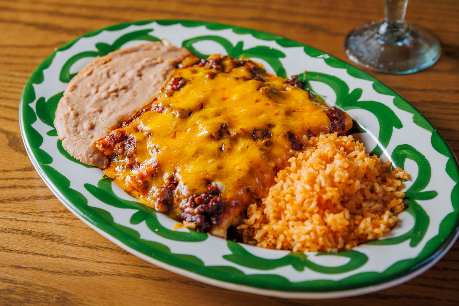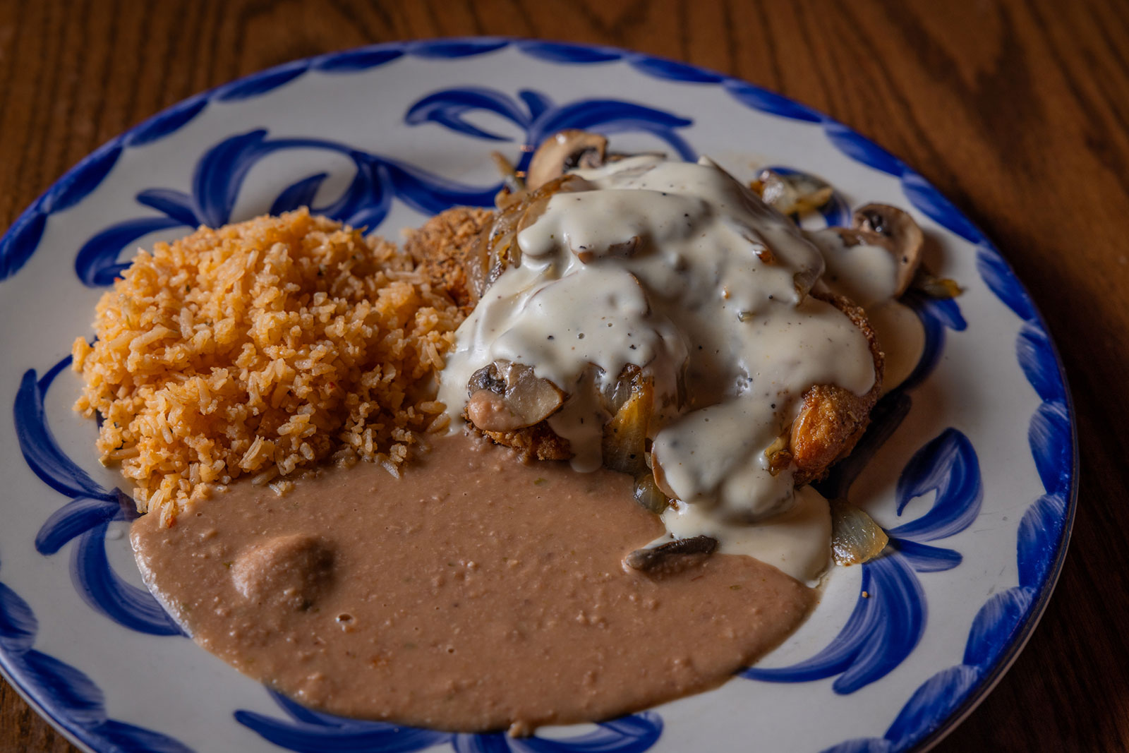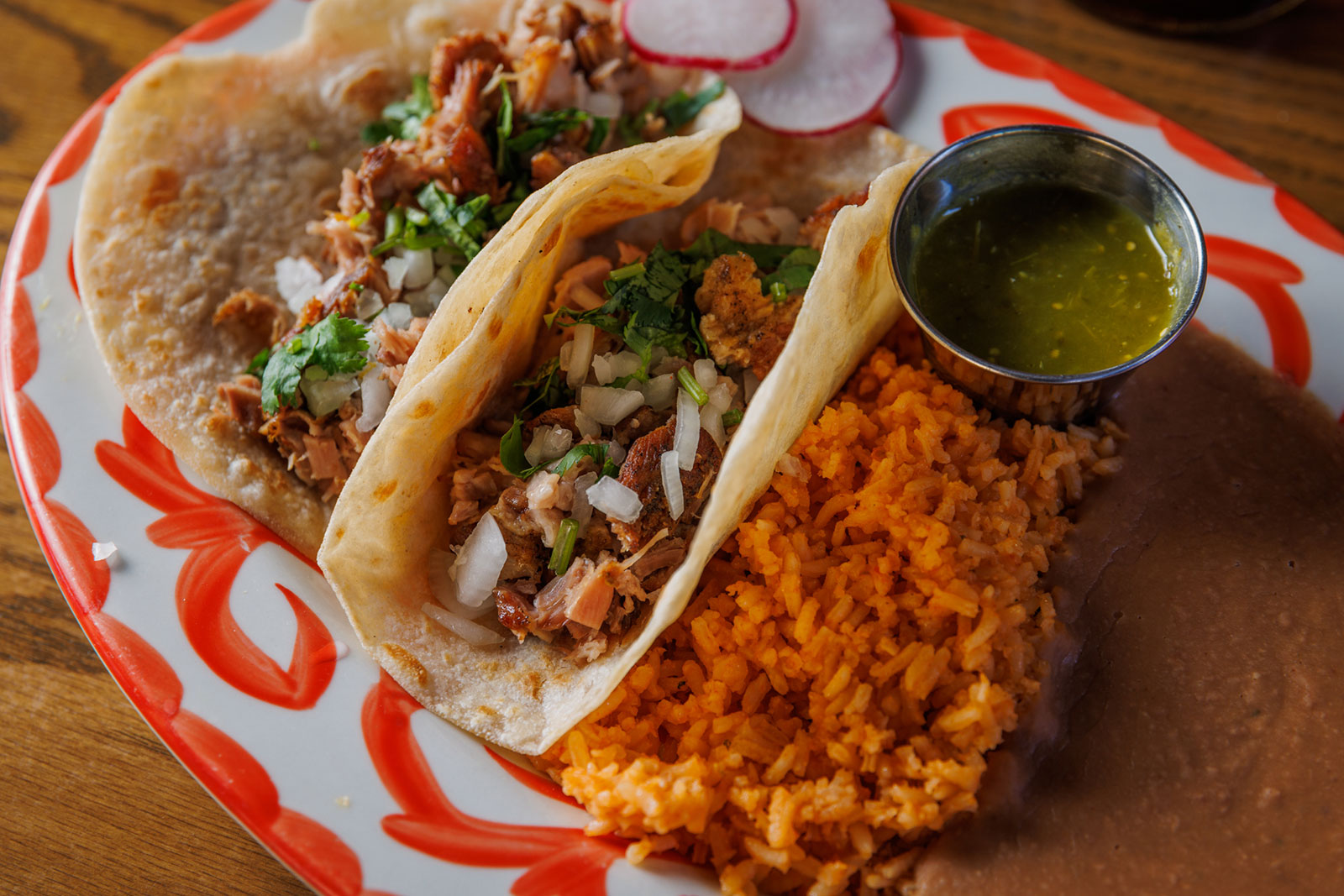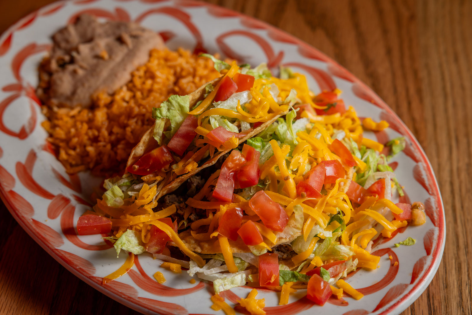 Six crispy corn tortilla halves topped with Chicken fajitas, refried beans, jack cheese, sliced avocado, and pico de gallo. Drizzled with sour cream and jalapeño crema. Served with cabbage slaw, sour cream, pico de gallo, and pickled jalapeños.