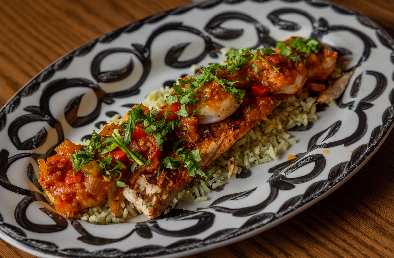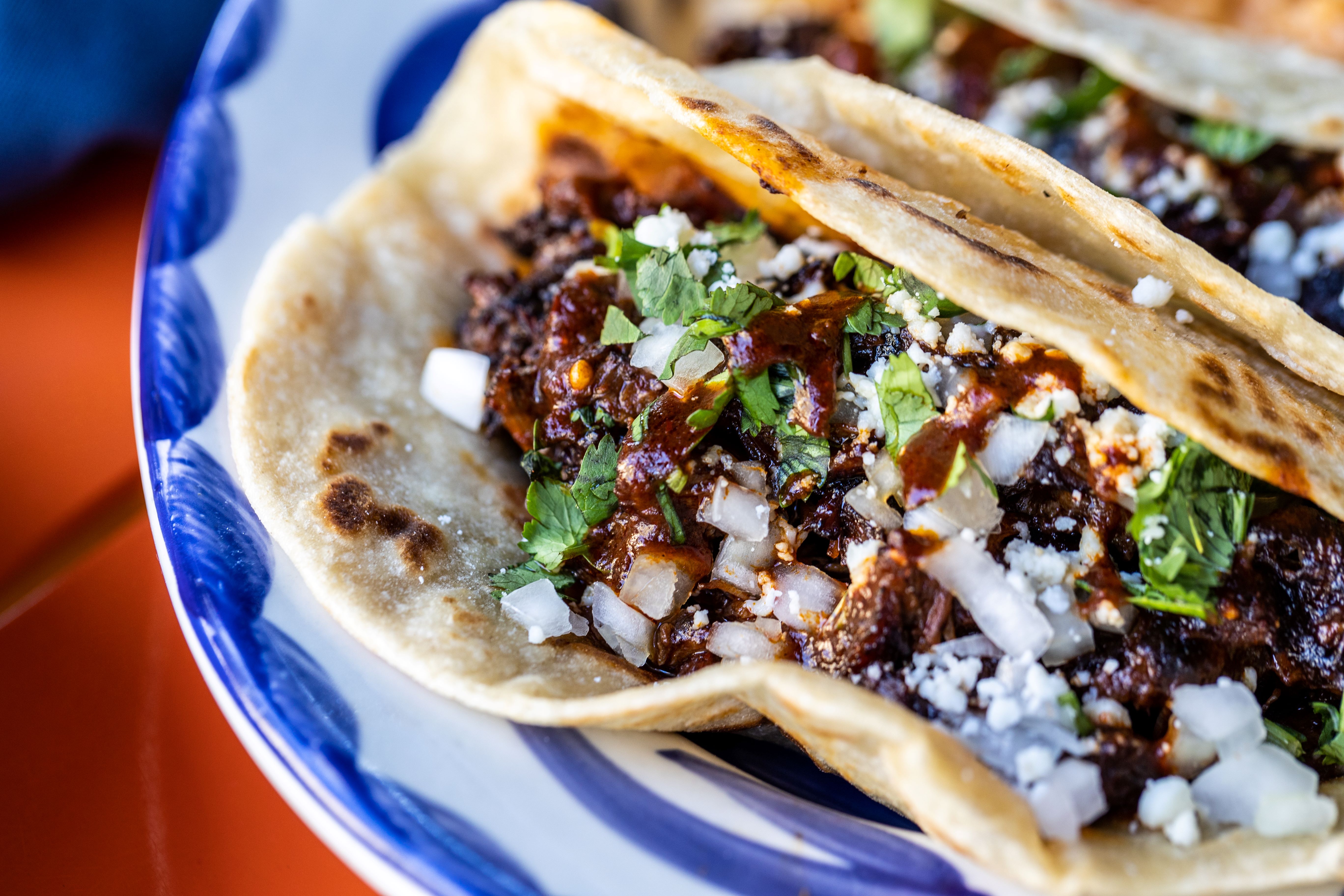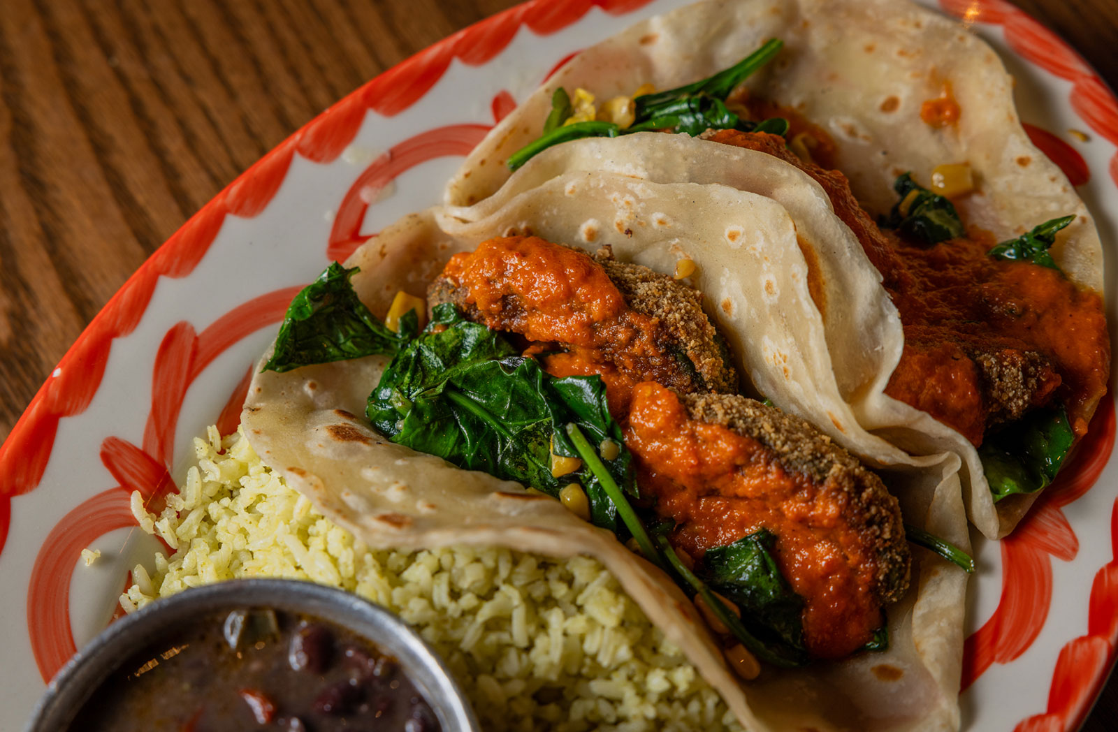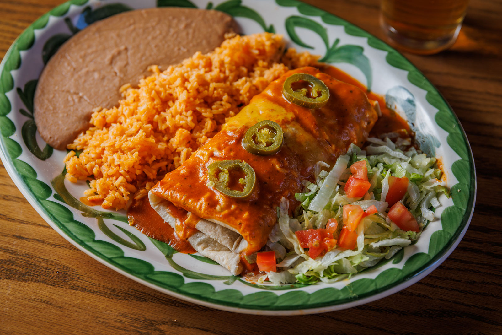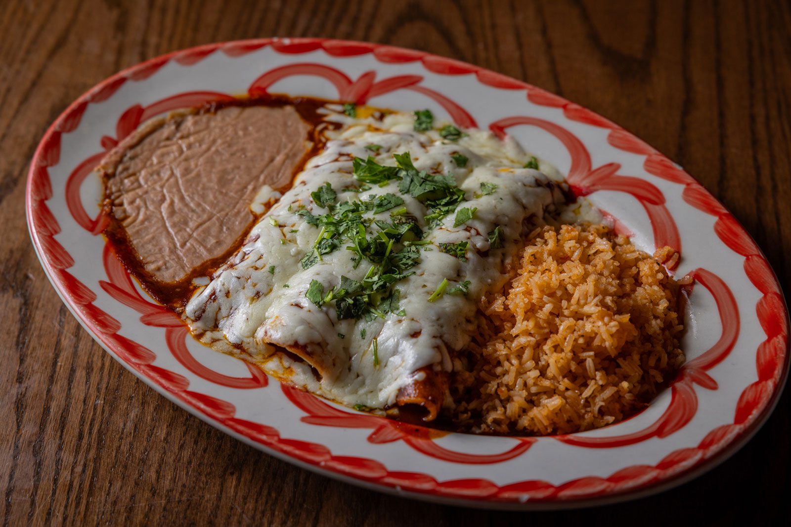 Six crispy corn tortilla halves topped with Chicken fajitas, refried beans, jack cheese, sliced avocado, and pico de gallo. Drizzled with sour cream and jalapeño crema. Served with cabbage slaw, sour cream, pico de gallo, and pickled jalapeños.